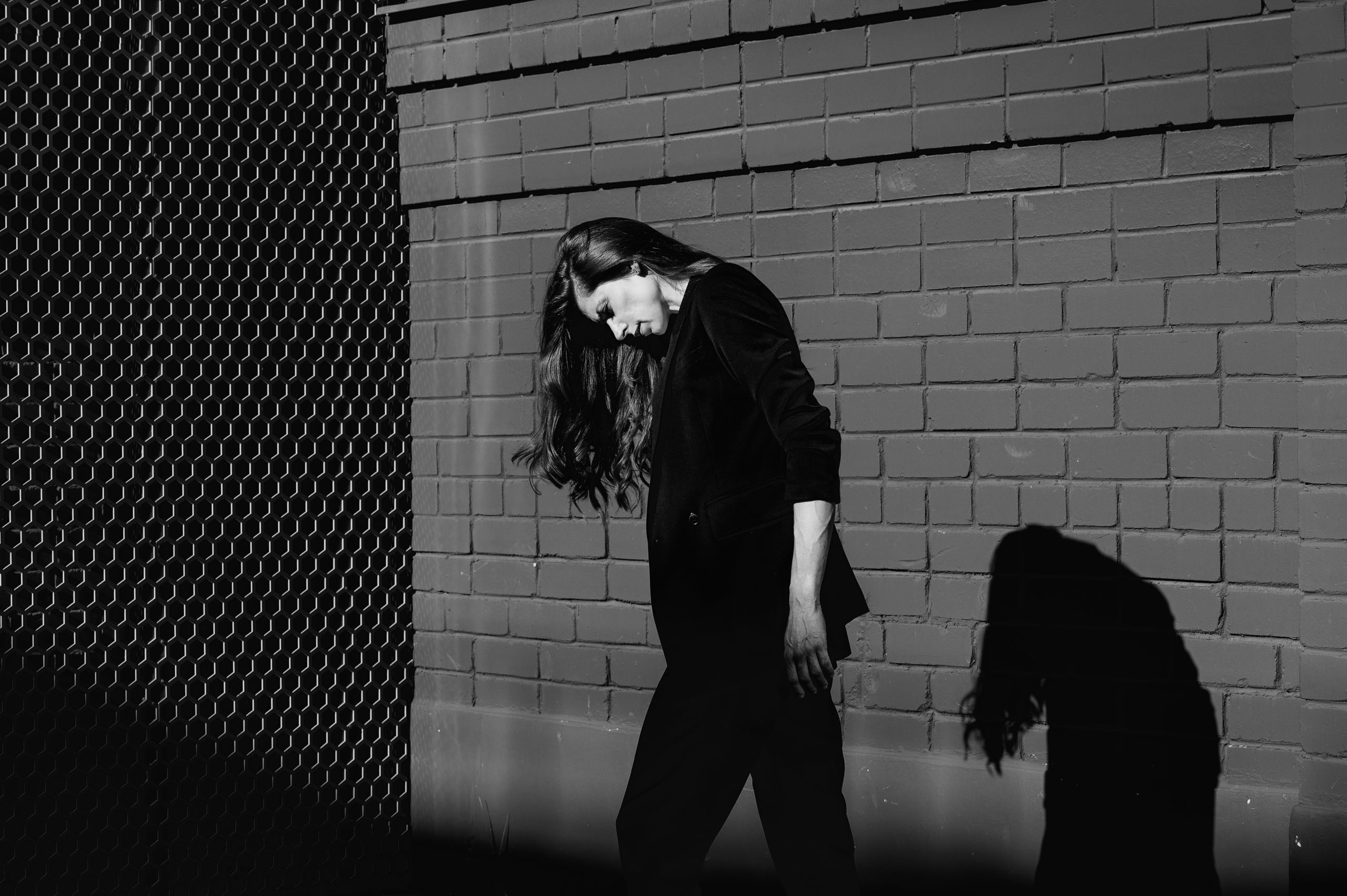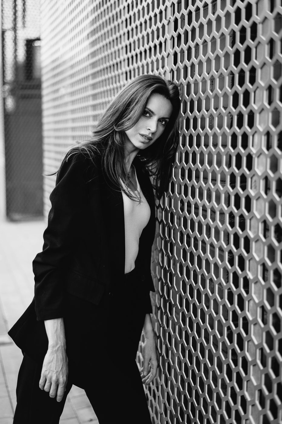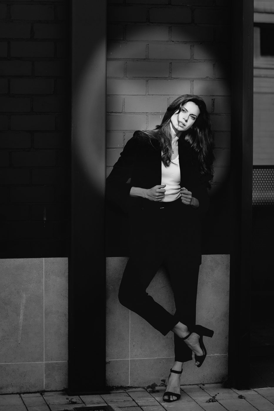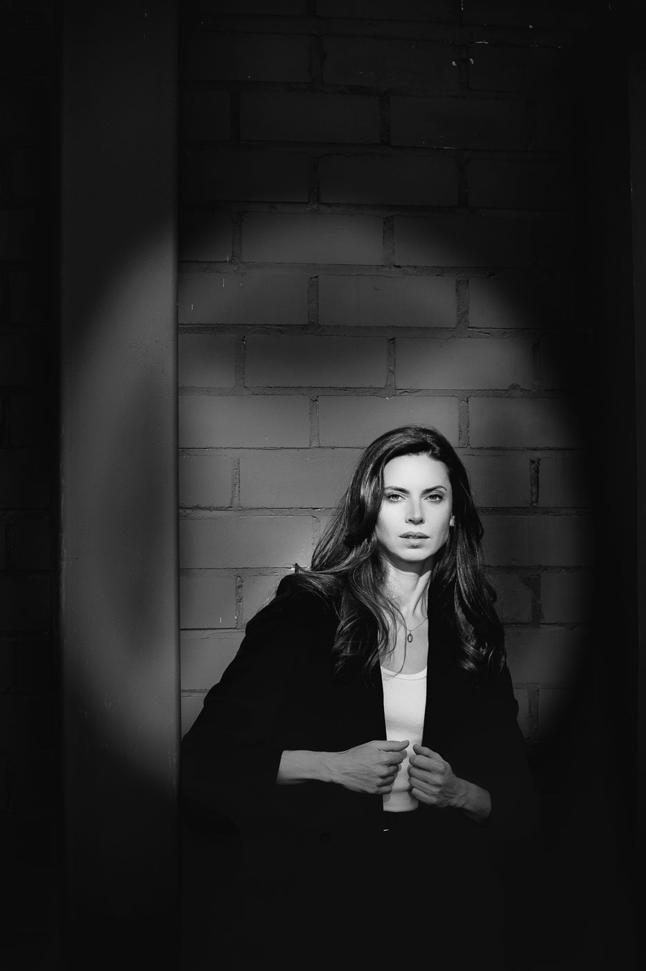 Эта фотосессия задумывалась полностью в чёрно-белых тонах, в локации торгового центра и строений вокруг него. (Хотя пару фотографий впоследствии я всё же оставил в цвете). Одежда модели - чёрный брючный костюм и белый топ. Такой строгий образ модели в сочетании с тёмным, брутальным окружением локации и монохромным тоном фотографий должен был выражать напряжение в скрытой истории.
