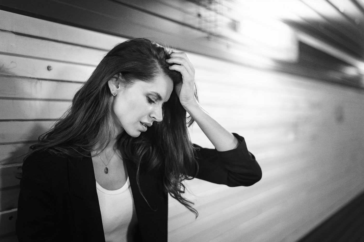 Финальной точкой был подземный переход, в котором я уже когда-то фотографировал. Искусственный свет, граффити и металлический профлист на стенах были тем, что нужно для той атмосферы кадров, которая мне и была нужна. А сама съёмка прошла под аккомпанемент уличного музыканта, играющего в переходе.