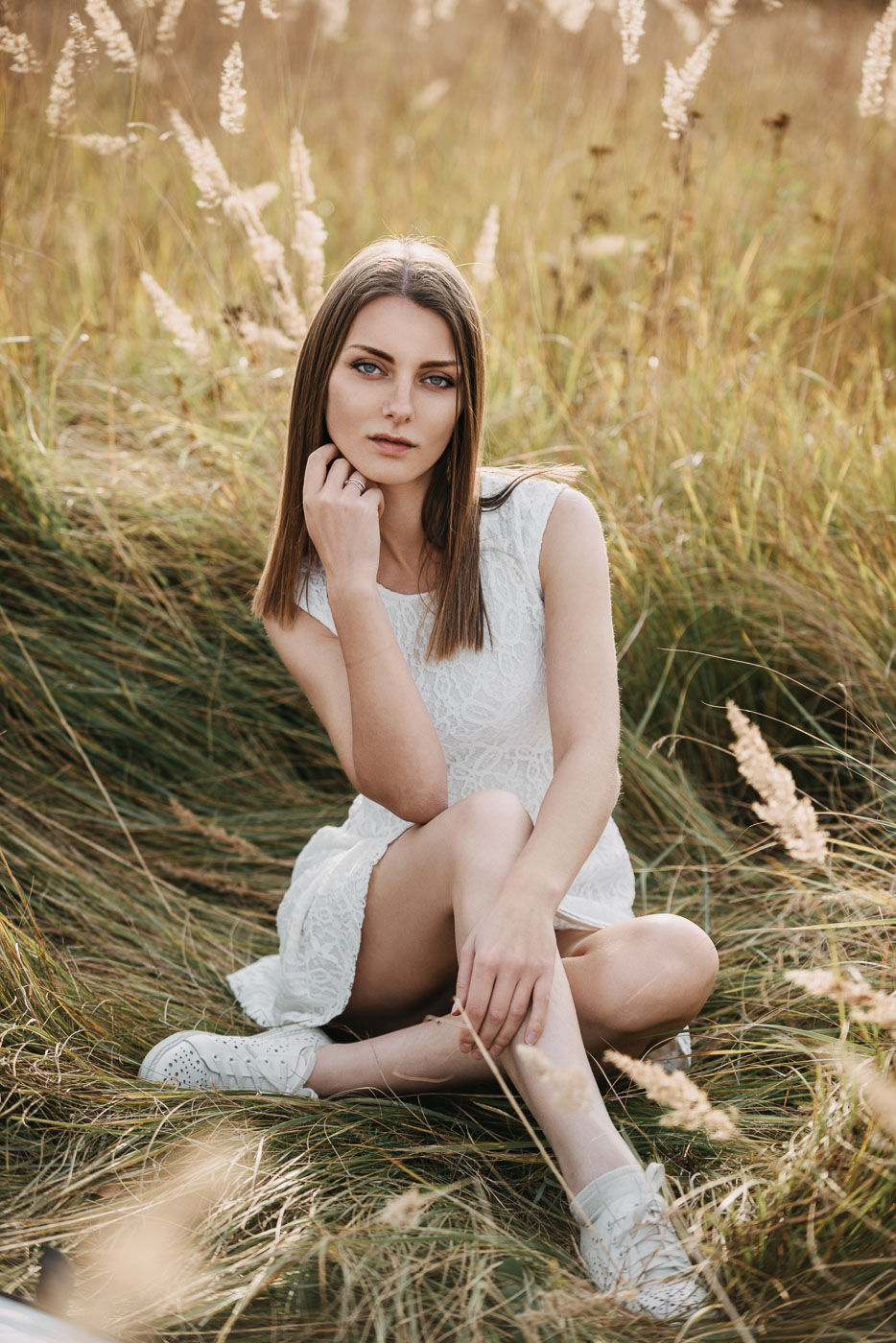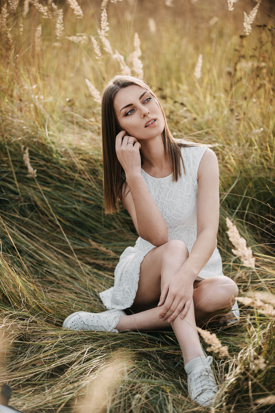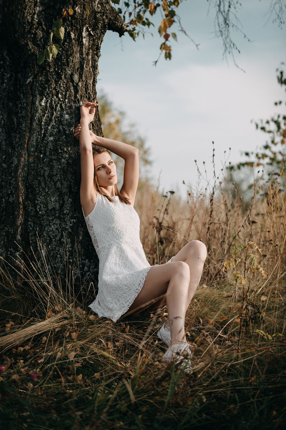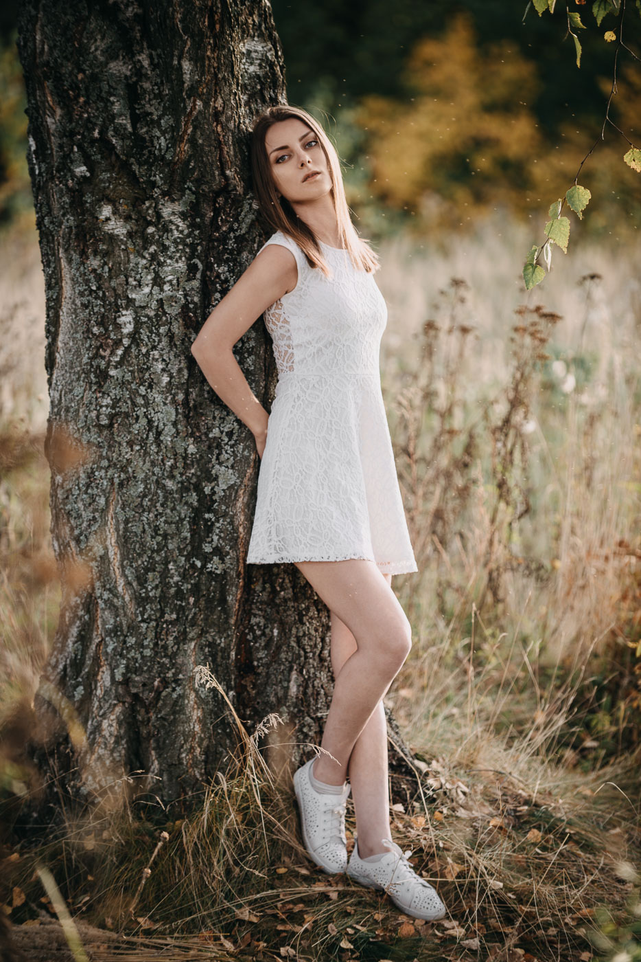 В кадрах хотелось сохранить и мягкий закатный свет, и фактуру высокой осенней травы, и это редкое ощущение тёплой осени, которая вот-вот закончится. Рядом росла живописная берёза, которая тоже стала частью съёмки. В итоге получилась небольшая серия: спокойная, сдержанная, без внешней драматургии, но с внутренним настроением, которое, как я надеюсь, чувствуется между кадрами.