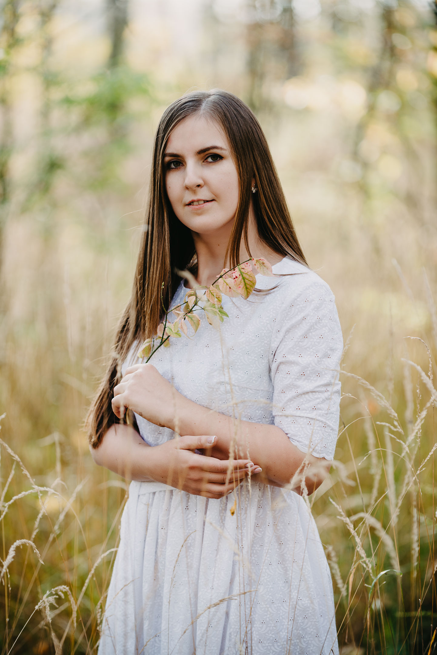 Фотосессия с Леной в солнечный тёплый день ранней осени. Нежные, романтические и задорные образы. Съёмка проходила в лесу в Заволжском районе Ярославля, и немного поснимали в поле неподалёку.